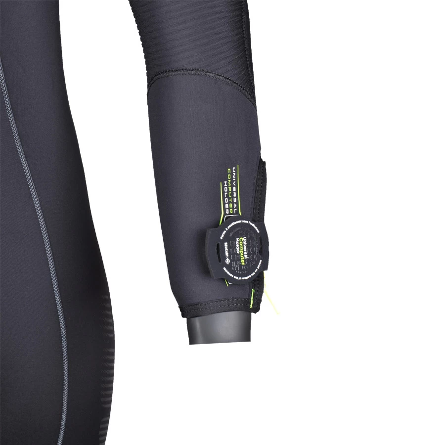 Système original Beuchat permettant de maintenir l’ordinateur de plongée en place sur le vêtement, notamment pendant les plongées profondes.